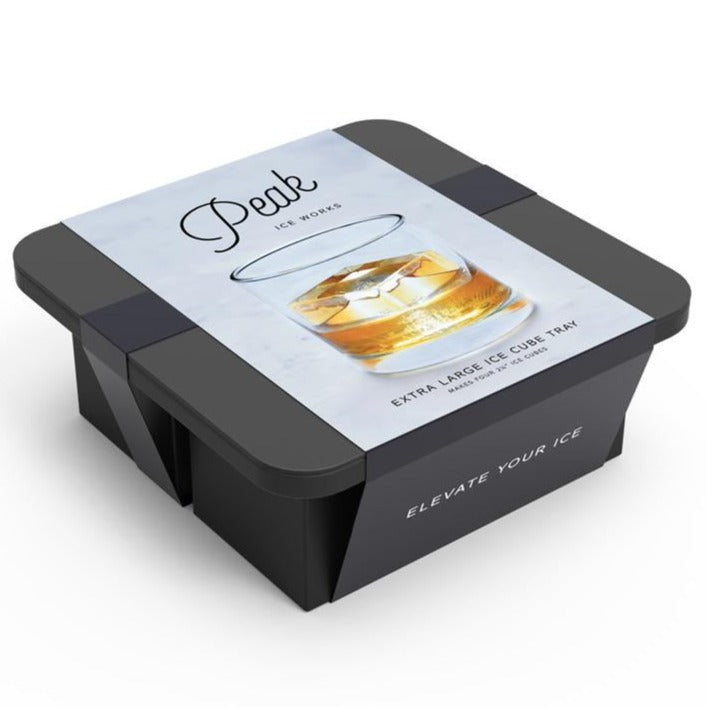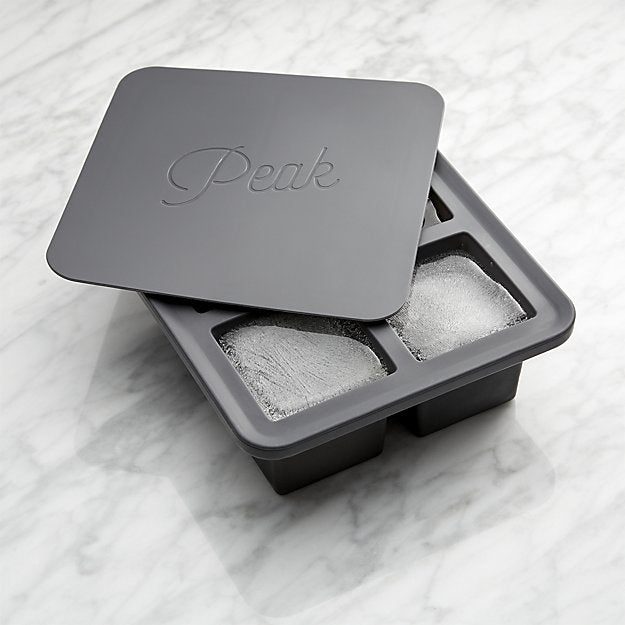 The Peak collection of ice molds allows you to craft mixologist-quality ice at home. This tray makes four extra-large ice cubes to keep drinks colder and prevent too much dilution. Lid keeps out odors, and steel-frame provides support.