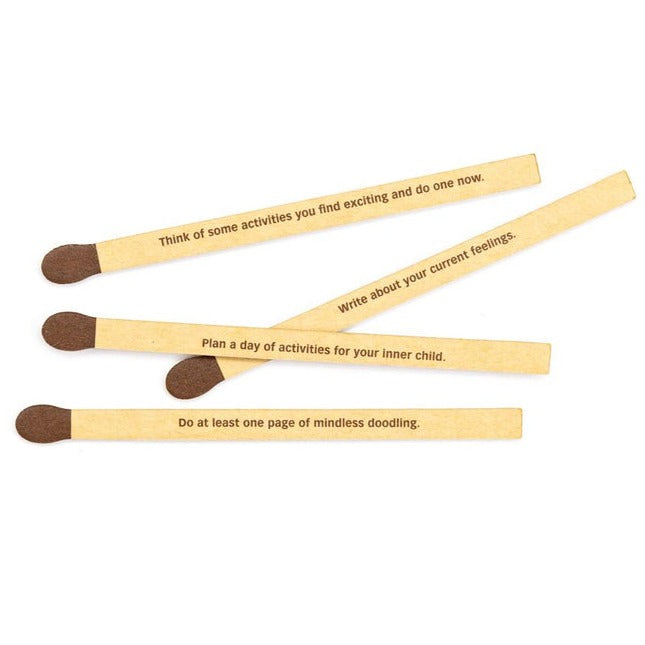 Balance in a box: accessible prompts in a pick-me-up package that will genuinely help to cultivate a more balanced life, including mindfulness practices and self-care activities. The gift of rejuvenation and calm, this is a perfect way to refresh for New Year, New You—or any time of the year. Includes 50 faux matchsticks with printed prompts.