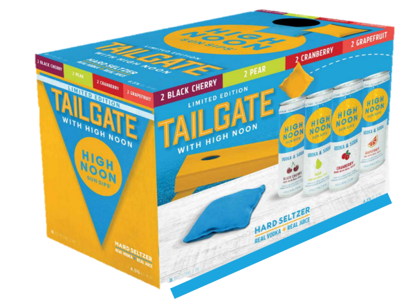 A new, limited edition High Noon variety pack made for tailgate season. Features two new flavors—pear and cranberry—as well as grapefruit and black cherry. Made with real vodka and real fruit juices.