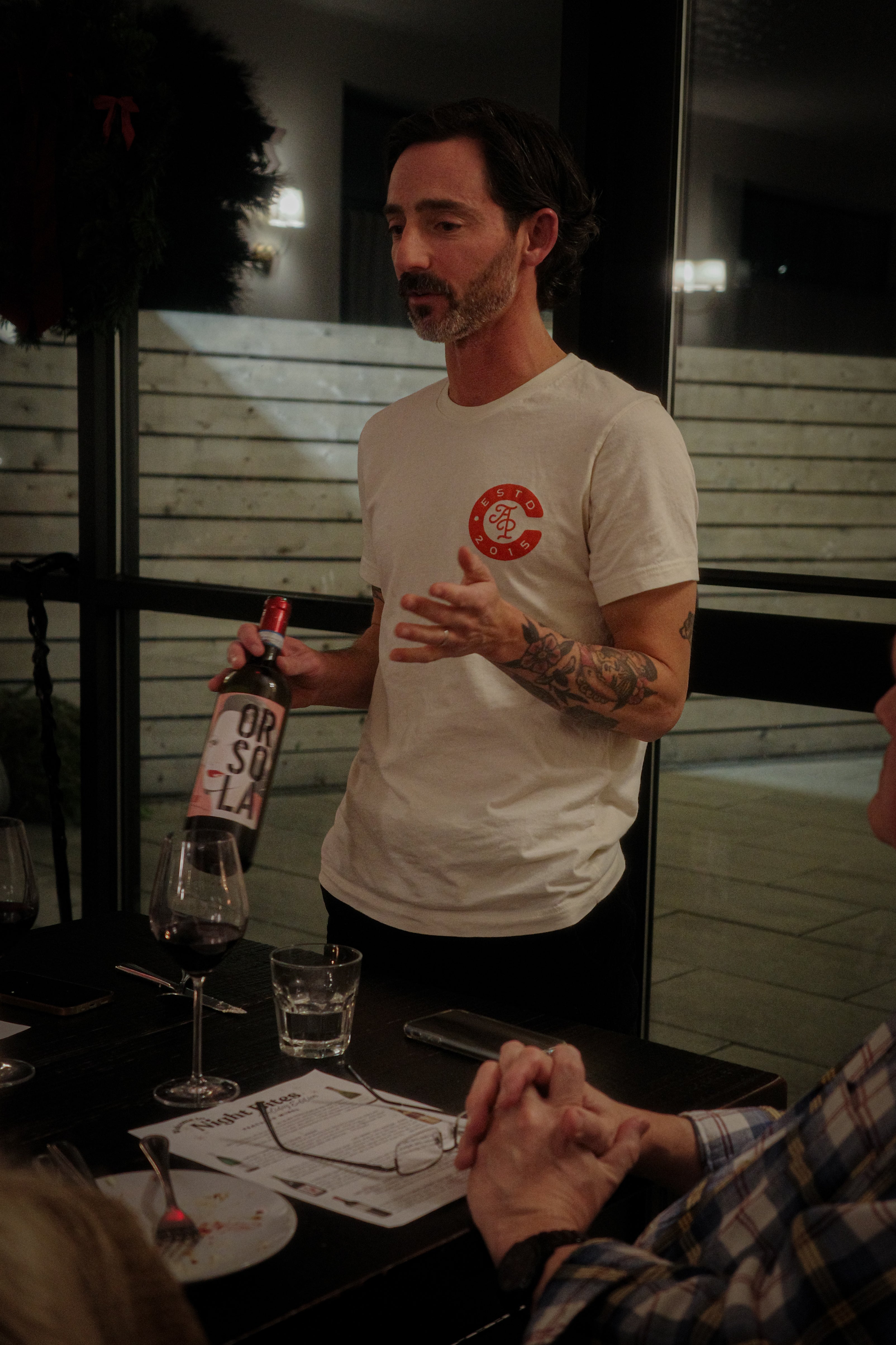 - Wine & food pairing featuring six different wines, gourmet snacks, and food from our kitchen